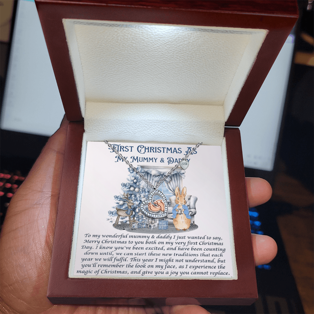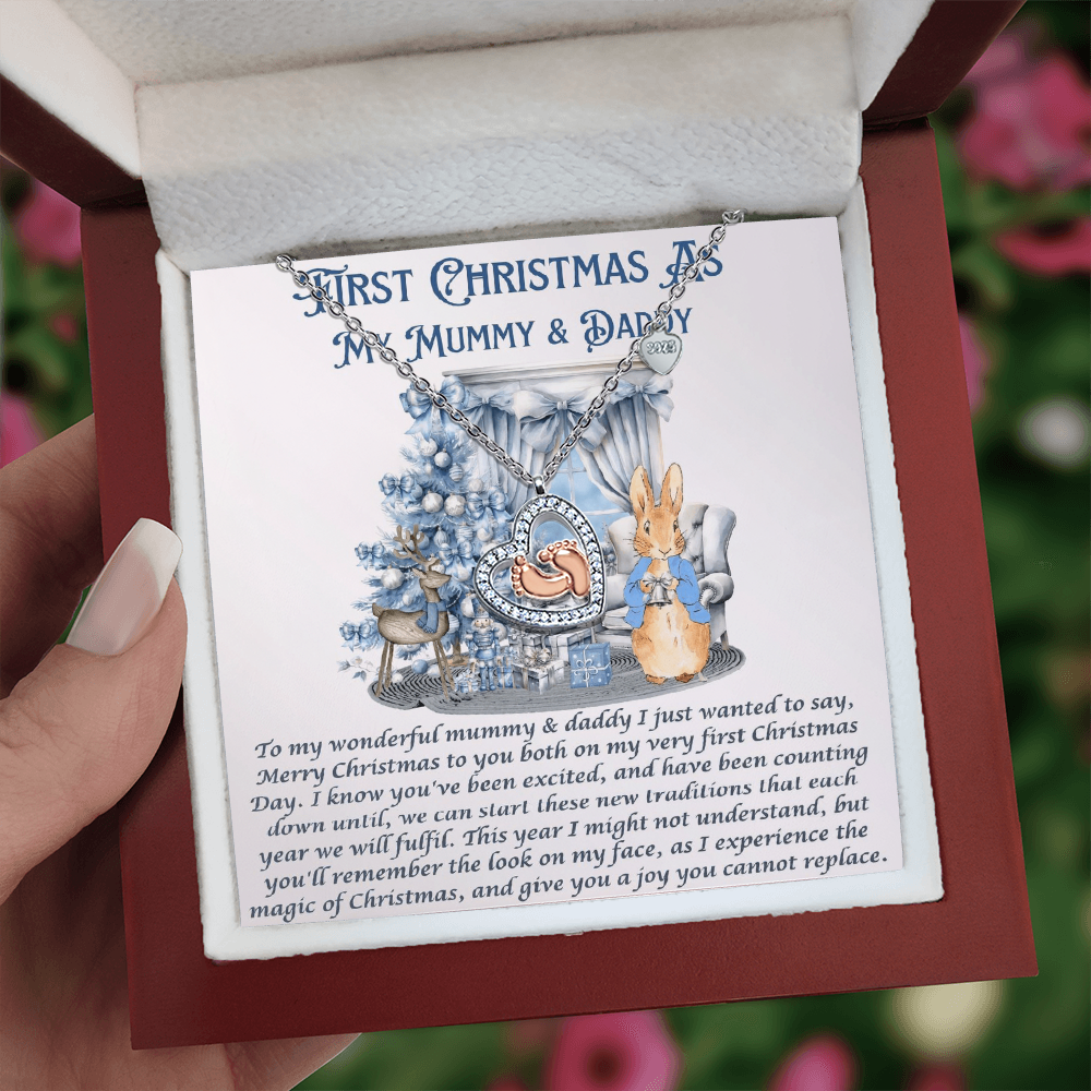 Our First Chrismas Baby Feet Heart Necklace